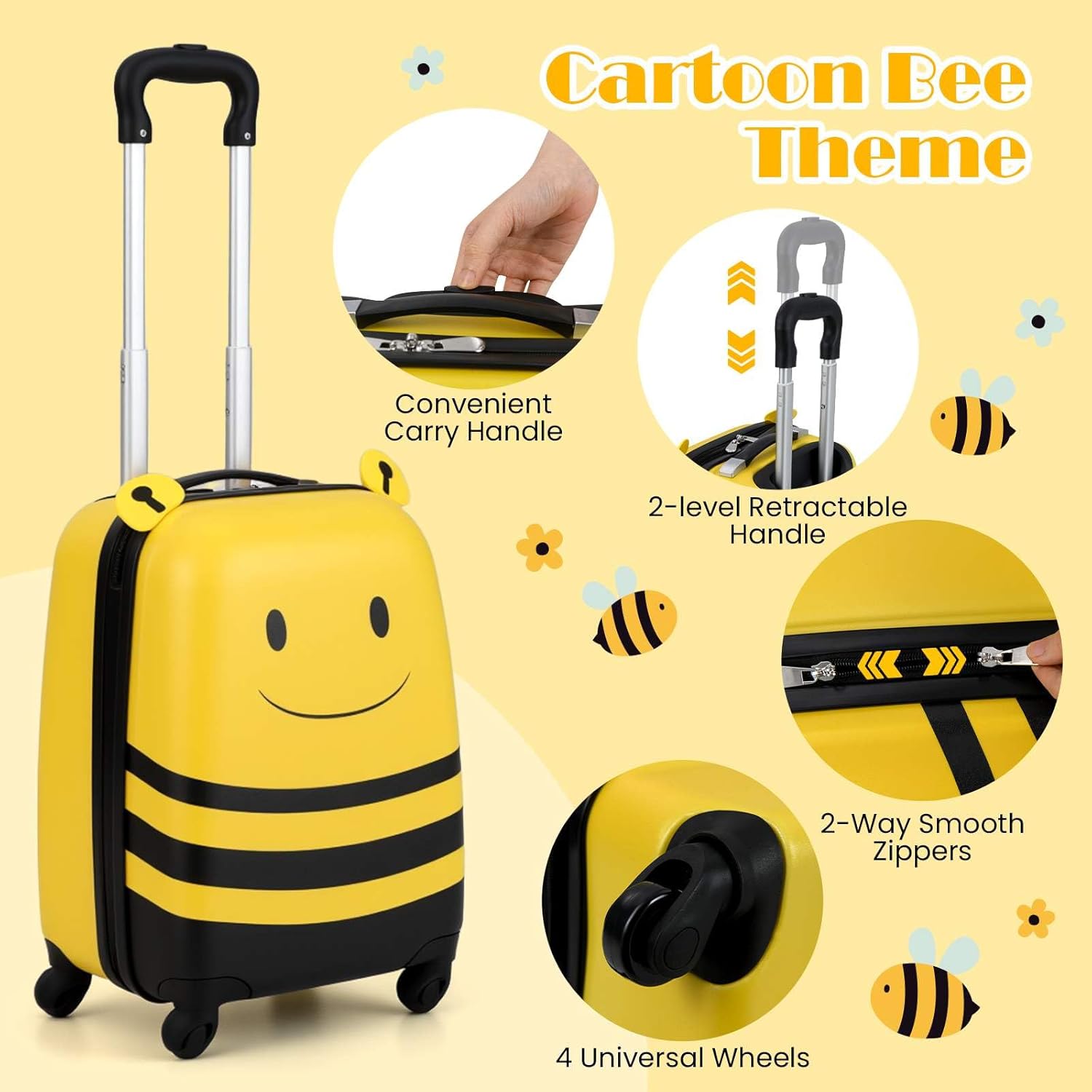 This set includes an 18" hard-shell suitcase and a 12" matching backpack, both crafted from durable ABS and polyester for long-lasting use. The suitcase offers a spacious interior with an X-belt and secure zip compartments to keep belongings organised, while the backpack includes mesh side pockets for snacks or water bottles. A three-level telescopic handle, four smooth spinner wheels and an adjustable strap make it easy for kids to move or for parents to carry when needed. The included anti-lost rope ensures safety in busy airports or public spaces.