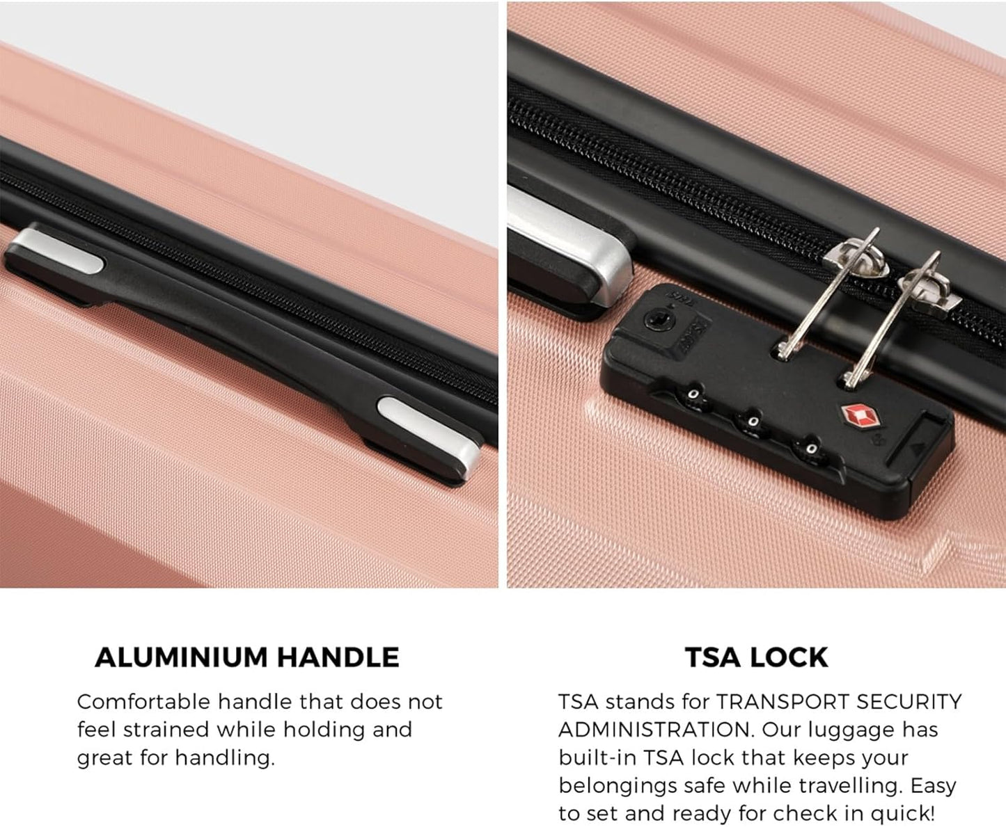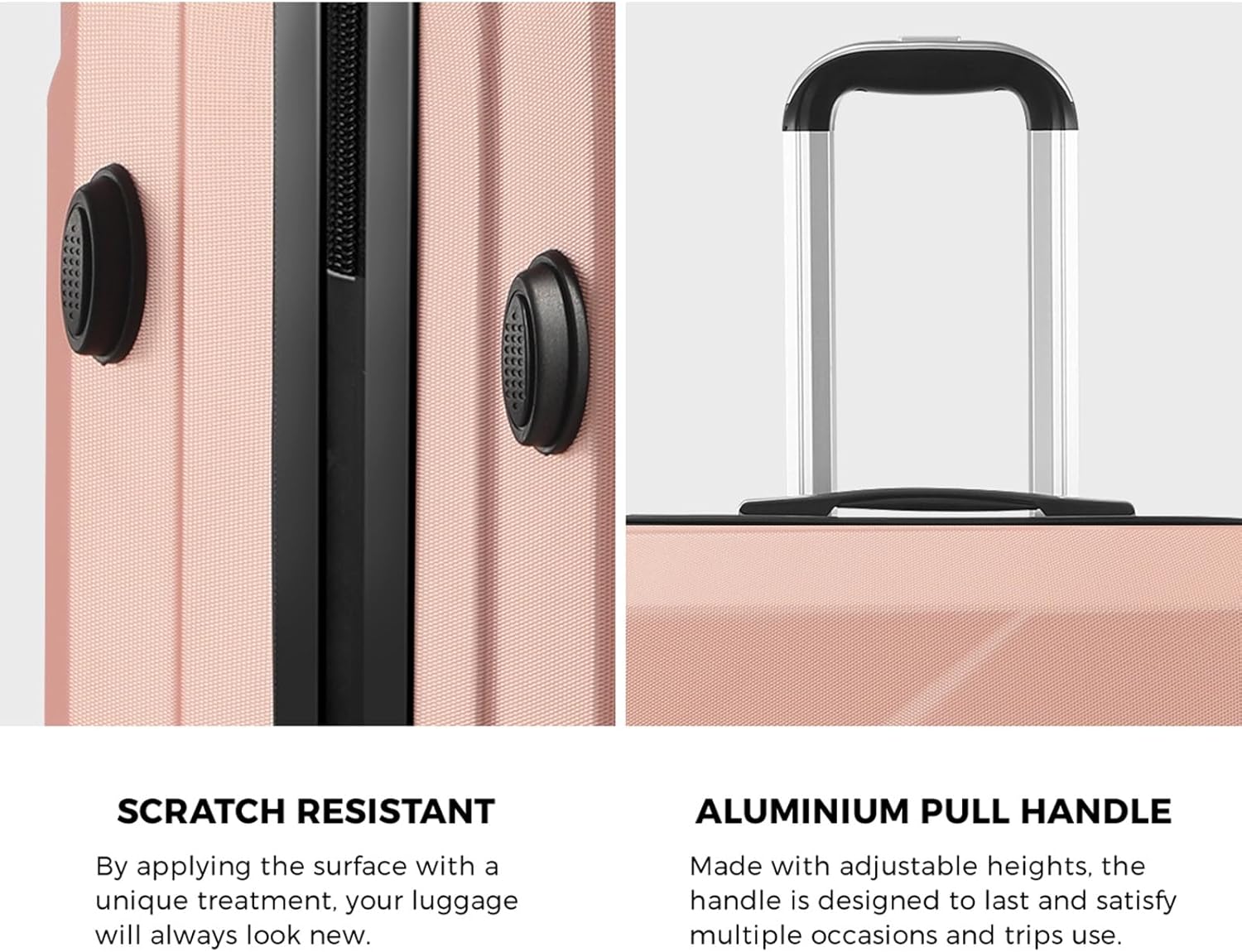 This set includes a 20” hard-shell cabin suitcase and a matching 12” trolley bag, ideal for weekend getaways or as carry-on companions. Made from durable ABS with an aluminium handle, the structure is impact-resistant while remaining lightweight. The built-in combination lock secures your belongings, and 360° spinner wheels provide effortless movement across terminals. The trolley bag features a soft top handle and fits neatly over the suitcase handle for hassle-free stacking.