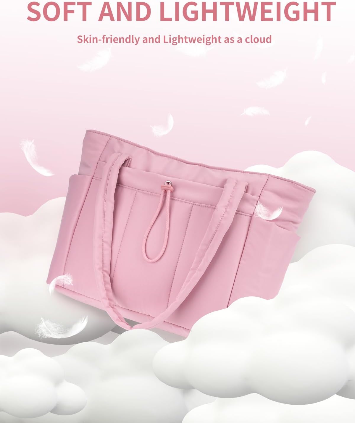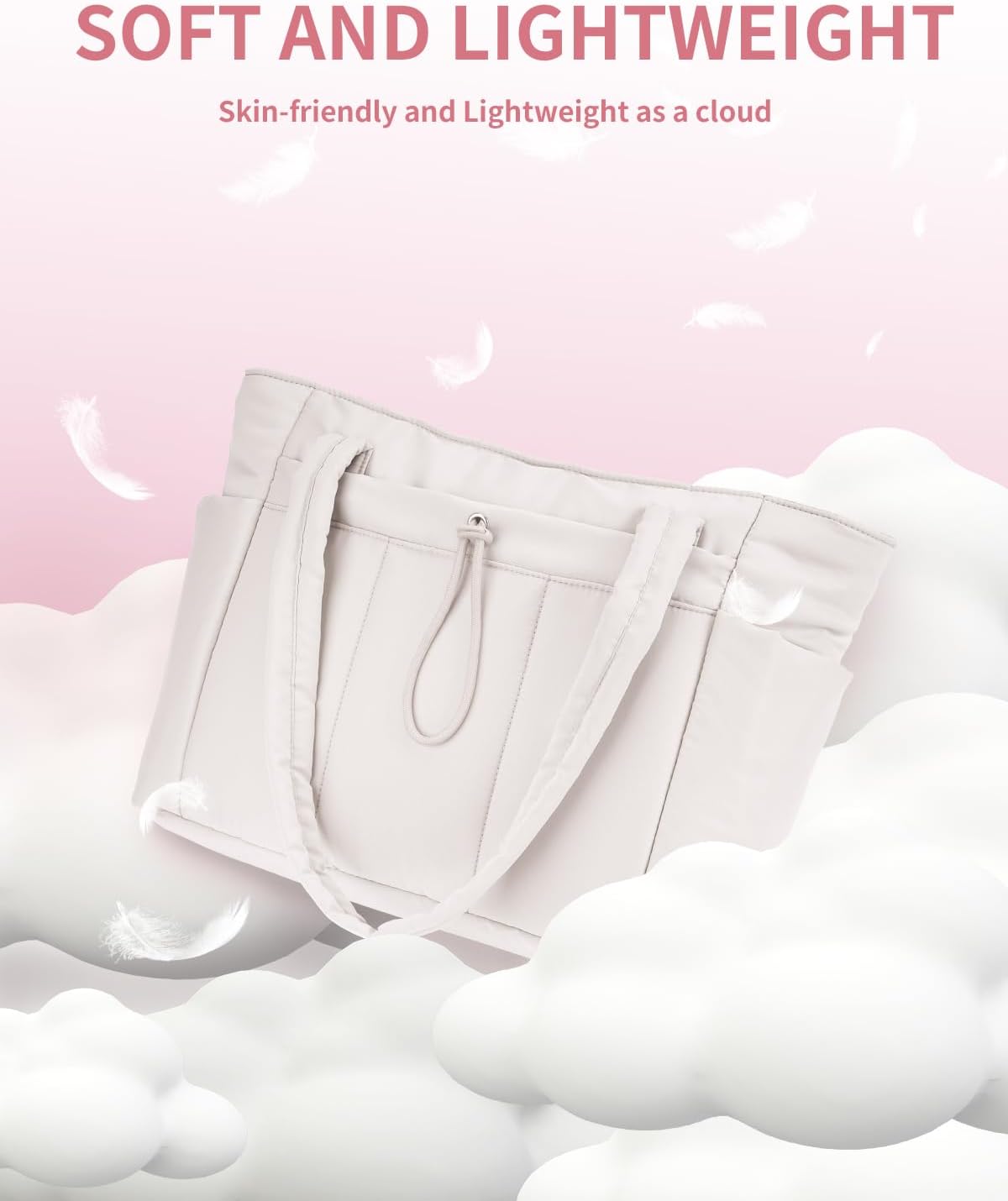 Quilted Puffer Tote with Cup Holder & Laptop Sleeve for Travel and Work